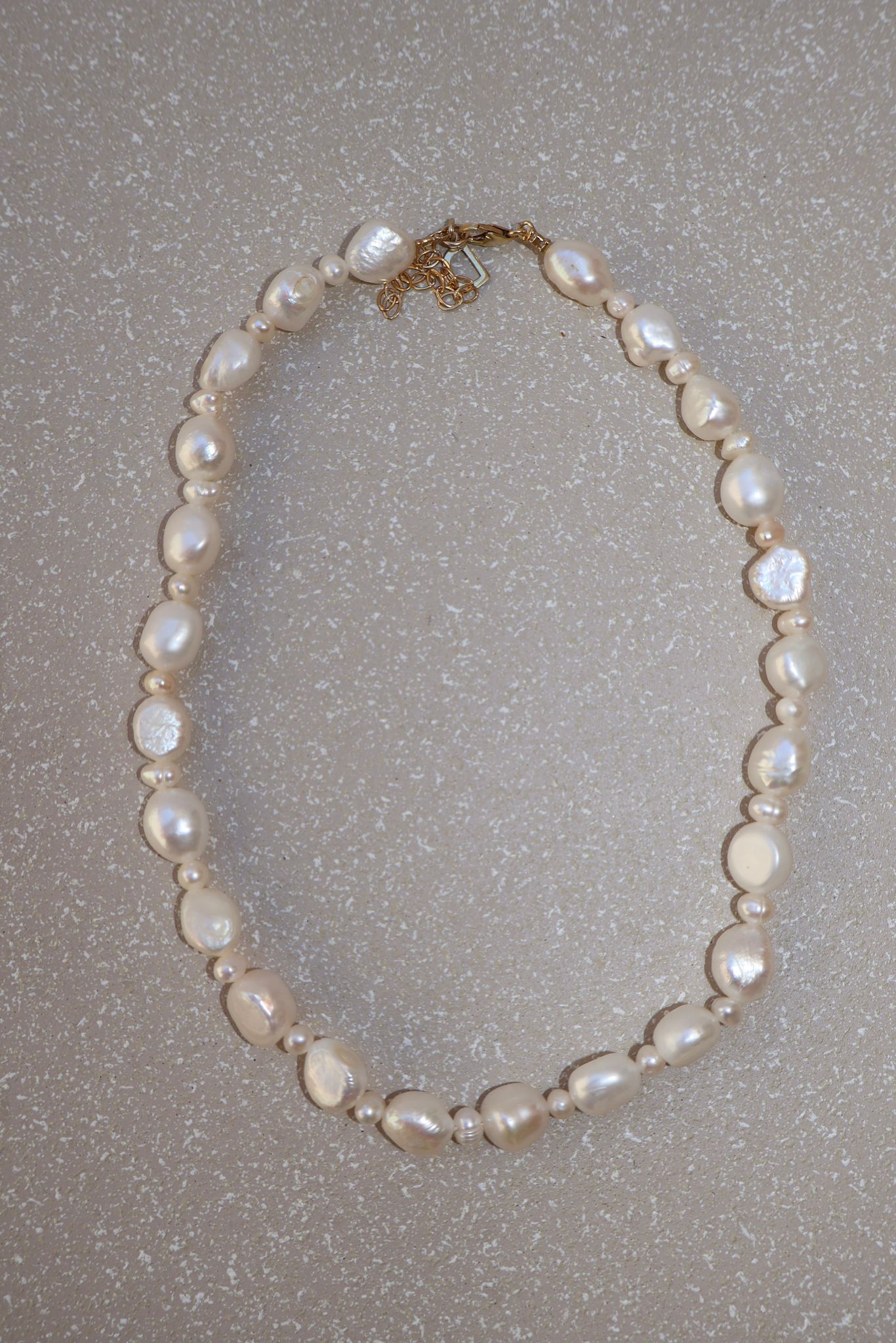 שרשרת פנינים מתורבתות בשילוב שני גדלים שני פנינים.