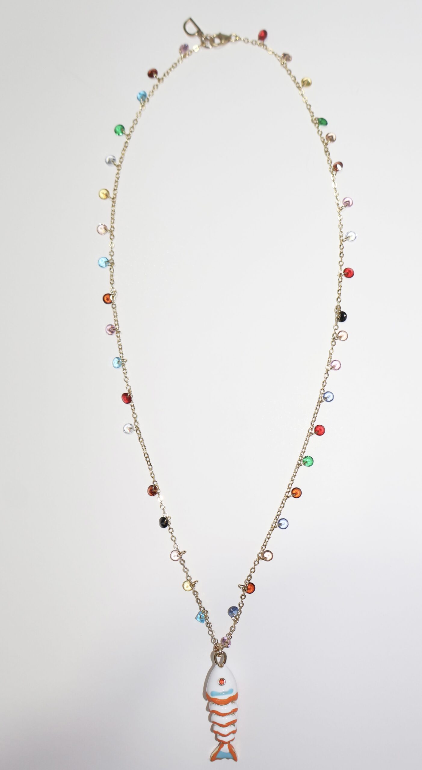 שרשרת קריסטלים צבעונית בציפוי זהב בשילוב דג גדול.