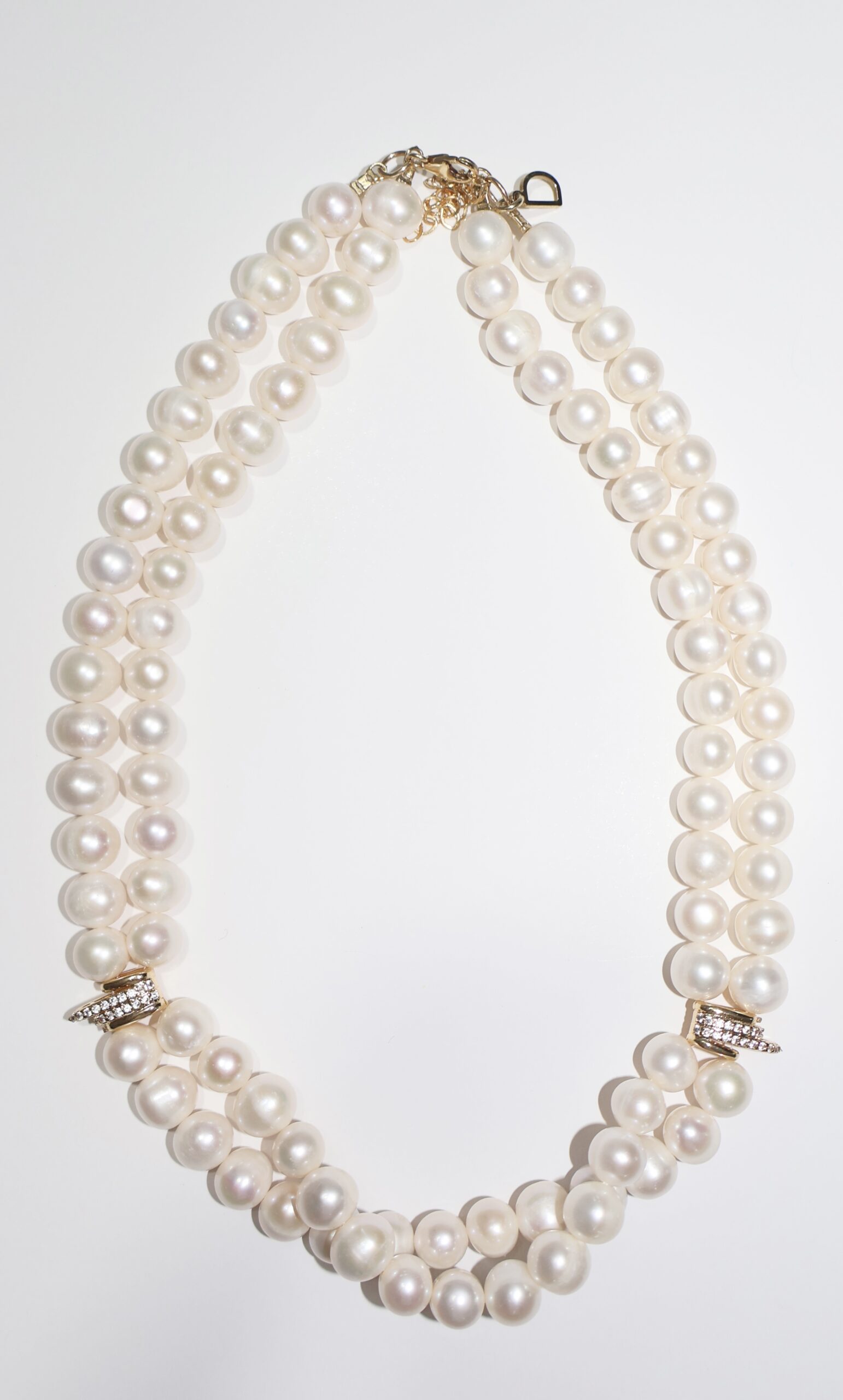 שרשרת פנינים טבעיות יוקרתיות מאוד. שרשרת כפולה בשילוב חרוזי גולדפילד.