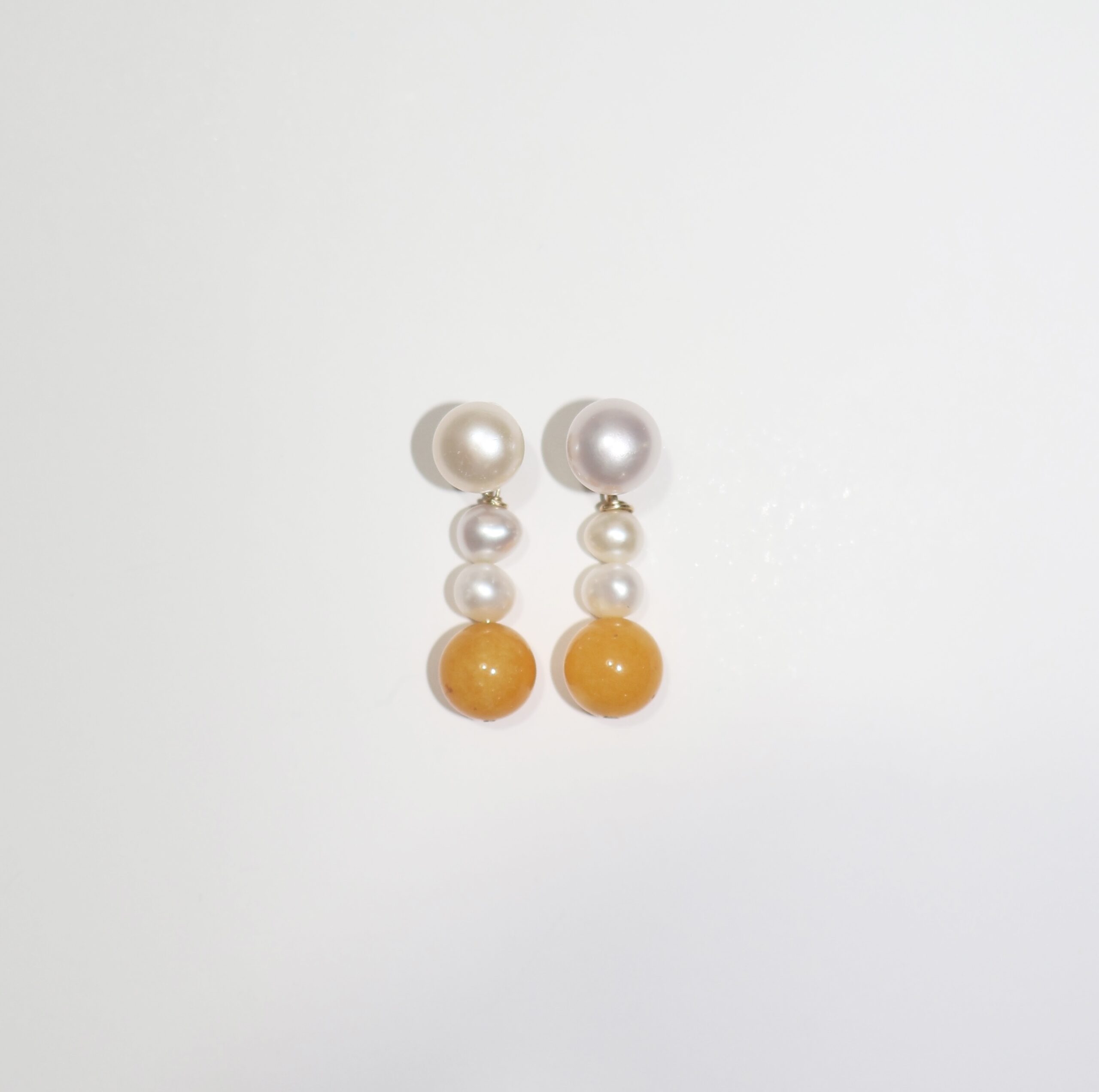 עגילי פנינה בשני גדלים בשילוב אבני חן גֿייד צהובים.