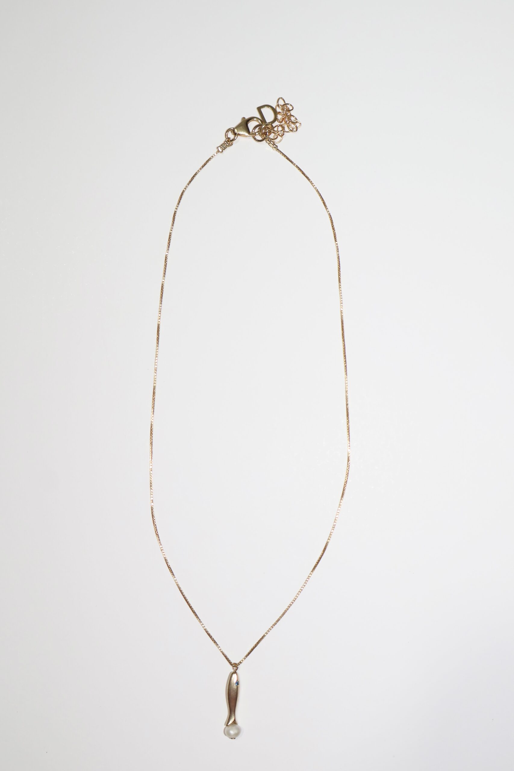 שרשרת גולד פילד חלקה בשילוב תליון דג גולד פילד ופנינה.