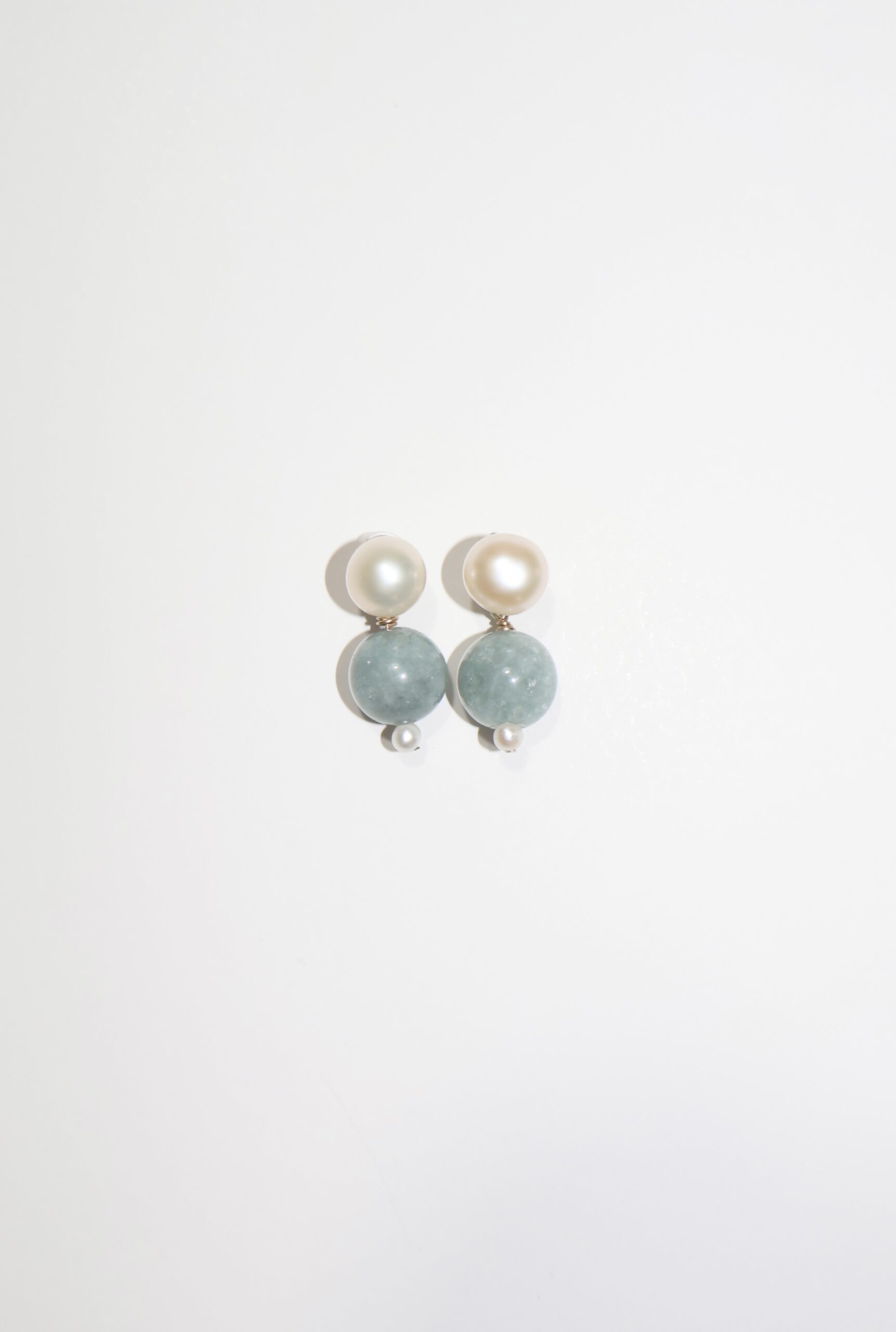 עגילי פנינה בשילוב אבני חן ג'ייד טורקיז.